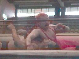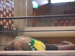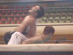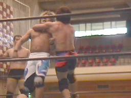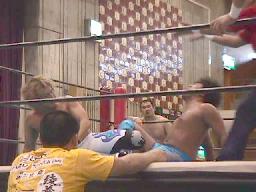 セコンドのアーバン・ケンが邪魔でフィニッシュ見えず。客が地べたに座ってるのにリングサイドで立ち上がって「土方さん!土方さん!」はないだろう。