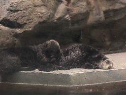 2匹のラッコ。ケンカしたり毛づくろいしあったり。