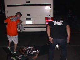 14時40分に集合、いよいよバスでレッスルマニア2000の会場、アローヘッド・ポンドに向かう。最初は添乗員の永アさんが参加者を煽ろうとしていたが今ひとつ盛り上がらず。そこで高木選手に交代。するとさすが煽りの天才、あっという間にバスの中を盛り上げてしまう。さすがの永アさんも脱帽。