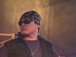 バンダナにサングラス、私服姿のエキサイティング吉田が入場(左写真)。エプロンに立ったところで先に入場していたMIKAMIが後ろから奇襲、場外に落とす。