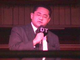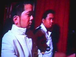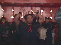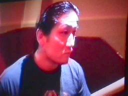 まずは今年の1月からの一連のエキサイティング吉田問題の総集編ビデオ。そして三和社長、スーパー宇宙パワーがリングに。三和社長渋い顔でマイク(右写真)。「先週のATOM、自称Ko-Dチャンピオン高木三四郎がブザマなギブアップ負け。私はこれに対し、自称Ko-Dチャンピオンの高木に第1出場を命じます!」観客「えー」三和「ブーイングじゃないでしょう!なんだ、先週の社長集会で親しくなったと思ったらもう突き放すのか!」