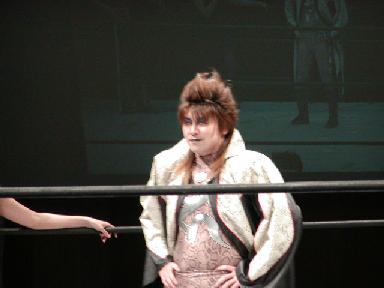 「Relax」に乗ってスーザンがリングイン。「三和ちゃん、早く来なさい。」三和もあわてて来る。「こないだのジオポリス、これ何よ!」スーザンが怒ってる(右写真)。「この映像見てよ。」流れたのはアイアンマンヘビーメタル級選手権試合の宮崎の大立ち回り。三和「ああ、この試合はひどかったね。」スーザン「違うわよ!アタシが言いたいのはこの女。何よドン・キホーテで買ったような安い服着て、西川口のピンサロ嬢みたいなヨゴレ!」スーザンのボキャブラリーも凄くなってきたもんだ。(スーザンは日暮里って言われたんだっけ?)