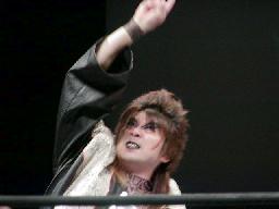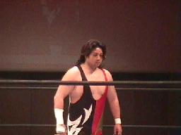 そのXだが、テーマソングが流れても誰だかわからない。入場。コンプリート・プレイヤーズの保坂秀樹であった(左写真)。この「5番勝負」、このへんのゲストレスラーが相手になるのかな?
