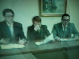 まずはジオポリスまでの流れとジオポリス大会のビデオ(右写真)。BGMは「G線上のアリア」。最後はメインを締めて喜ぶMIKAMIと生徒会解散に追い込まれて嘆く佐々木の映像が相互に映し出され、最後に「DDTの光と影」の文字。