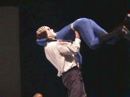履歴書変造男コーナーに振る、コニカマンは待ち構えてカウンターのキック、コーナーに上ってミサイルキック打つが履歴書変造男スカす。履歴書変造男ボディスラム連発からエルボードロップ。コーナーに振る、コニカマンはエプロンに出て突進してきた履歴書変造男にハイキック、コーナーに上るが履歴書変造男は雪崩式ブレーンバスター(右写真)、カウント2。