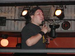 休憩が始まったかと思うとすぐにノーブラーのテーマ。うらんちゃんと高偽が入ってくる。高偽は「限定5枚」偽造3:46Tシャツ即売会を開始(右写真)。あっという間に完売。