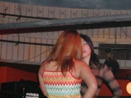 三和社長がいない、ということでオープニングは蛇界転生。「7・8月限定」蛇界ダンスを今日はヘビダー、高偽三四郎を加えた4人で踊る(右写真)。ポイズン「三和社長がいないと寂しいだろ。あのデッカい、脂ぎったのがいないと。私が仕切るしかないかな。スーザン、今日のメインは?」スーザン耳打ち。「私、菊蛇ワ、高偽とニセ高木の3vs1か。あのニセ者もいいかげんに潰しておかないとな。」