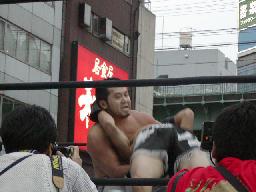 三四郎集会ではDDTイメージ・ガールの話、DDTタッグリーグ戦の最終戦(9/30)がDDT初使用の桂スタジオになること、しかし駅から遠いので東京からのバスツアー、最寄駅(蒲生?)からのピストン運動(高木談)を考えてる、とのこと。そして3つめの重大発表はプロレスのメッカ水道橋に「WWF・NYをほどよくパクって」DDTステーキを開店(8/27)というもの。