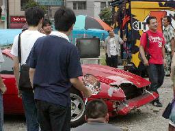 中からはボロボロのフェラーリが(左写真)。高木「昨晩修理工場からかっぱらってきた!今日のメインであのフェラーリボコボコにしてやる!」