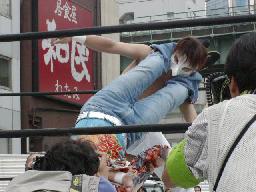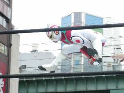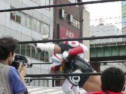 蛇界で流行しているらしいヘビパラを踊る。蛇界では最高難度のサイドステップ(そりゃ、蛇には足ないからねえ)を取り入れているそうだ。ま、要するに各選手の決めポーズ(「バキューン」とか「スクールボーイ!」とか「ファイヤー」とか)をパラパラにしただけだが。ヘビダー遅れる(右写真)。お手本の後は観客も一緒に5分間ヘビパラ。長いよ。