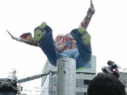 「しっかし天気悪いなあ。よし、私が空に呪文をかけよう。」空に向かって雨が降らないよう呪文をかけるポイズン(左写真)。「これで大丈夫。降ったらごめんな。このままいやがらせで3時間くらいしゃべっててやろうか。」