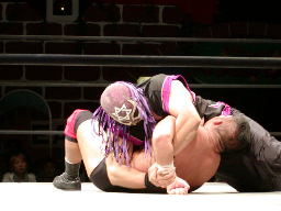 するとそこにジェイソン・ザ・テリブル乱入、XRABを蹴散らし、宇宙と一戦交えて(右写真)「Finally....Jason has come to DDT!」と叫ぶとMIKAMIをおんぶして帰っていく。