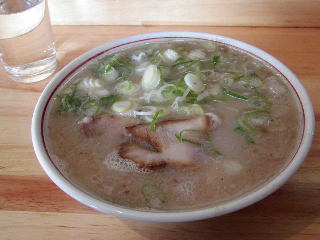 顔の部分拡大。確かにこれじゃあ普通の店じゃ使われまい。釣り人にはおなじみの魚のようだが。他にも黒鯛の塩焼き、あまだいのから揚げなどめったに食えないものを堪能。食後は「一番山」大橋店でラーメン。飲んだ後の締めはやはりとんこつでしょう。23時半解散。
