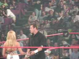 バックステージでビッグショーがトリッシュを口説く。とりあえずセコンドにはついてもらうよう約束したようだ。