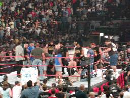 ようやくAPAらWWF守備隊がリングに(右写真)。しかしシェーン、ブッカーTは逃げた後。