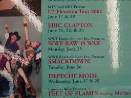 興行予定を見ると有名ミュージシャン(U2、クラプトンの他にROXY MUSIC、マドンナ、シャーデーなど)のコンサートと並んでWWFのRAW、SMACKDOWN!の予定が(右写真)。