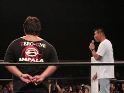 ワンダーマンさんの御厚意により急遽ZERO-ONE観戦。7時開始の予定がどんどん遅れる。さすがインディー。全カード紹介後、なぜか「AOコーナー」が鳴り響く。あれ?アレクが出るのはセミ前じゃなかったっけ?沖田リングアナ「大塚選手の希望と相手の受諾により第1試合の前に特別試合を行います。」