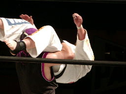 宇宙切り返してアンクルホールド(右写真)、橋本ロープ。