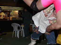 太は坂井をボディスラム、踏みつけ。逆エビに(右写真)。高木がレフェリーに押さえられている間に金村が入って逆片エビに。リリースして背中にエルボードロップ、カウント2。金村ボディスラム、エプロンに出てロープ越えプレス、その場ムーンサルトプレス、高木がカット。金村は太にタッチ。