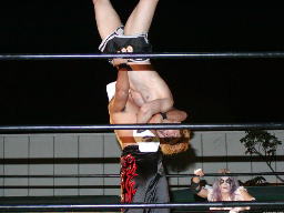 佐々木ラリアット、MIKAMI一回転。佐々木はMIKAMIを引きずり起こしD-ガイスト(右写真)、カウント3。