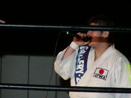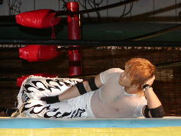 6人が入場したところでリング再調整。MIKAMI寝っ転がって待つ(左写真)。