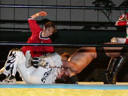 大刀光はタチ・クラッチ(右写真)、カウント3。