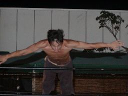 ハブ影コーナーに上ってムーンサルト、大家かわす(左写真)。
