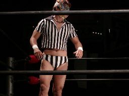 最後に入場は特別レフェリーの蛇影。わははははははこれはセクシーだ(左写真)。