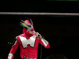 最初にHERO!&ハブ影入場。今日は2人一緒のポーズではなくHERO!はHERO!ポーズ、ハブ影はヌンチャク(右写真)。続いて蛇界転生(毎回恒例エスカレーターで)、そして高木三四郎が入場。