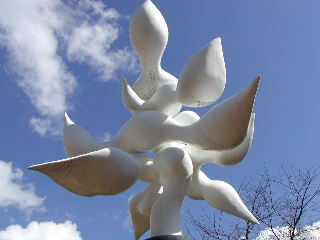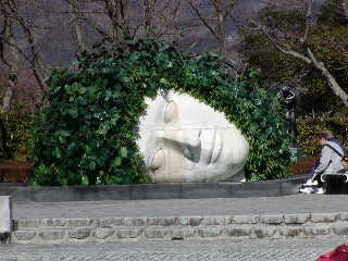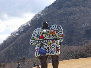 2日目となった11日、天気は晴れ。朝はバイキング。内容はいいが、従業員の手際がちっと悪かったのが残念。もうひと風呂浴びて10時にチェックアウト、富士屋ホテル直営のパン屋でカレーパンを買って再び箱根登山鉄道に。今日こそリベンジだ!という意気込みでまずは彫刻の森美術館に(強羅のいっこ手前の「彫刻の森」下車)。いい天気だと野外のオブジェが映える。これは「Miss