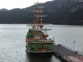 遊覧船から見た駒ケ岳。ここにはロープウェーで行くのだが、行っても何もなさそうな雰囲気。遊覧船は16時半に対岸の箱根町に着く。しかしドライブインみたいなのとみやげもの屋があるくらいでこれといった施設は近辺になし。時間もなかったのでそのまま箱根湯本行きのバスで下山。芦ノ湖はまさに「通っただけ」に終わった。次回(あれば)はこのへんも探索してみたい。で、17時47分発のロマンスカーで新宿に。天気にやられた旅であった。冬なんだから温泉だけにしとくべきだったかなあ?箱根初めてだったから欲張っちまったんだよね。まあいいや面白かったから。