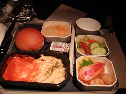 食事の際、永アさんに頼んでローカロリーミールを頼んだんだが、なかなか来ない。おかしいな、と思ってたらアテンダントが「これはあなたの?」と聞く。どこにあったんだ?2つ隣の空席にあったらしい。しかし1つ隣は顔見知りでもない中国人。置いたアテンダントが「PC使ってたんでそっちに置いた」「なんで知らない人のとこに?で、なんで言わないんですか?」「言いました。」「もし言っててもこっちが返事してなきゃ伝わってないんでしょ?」(実際飯来るのじーっと待ってたんで、聞き逃しということはない)「謝ります(I'm sorryではなくI apologyze)」みたいな会話をしたんだが、自分でもボロボロな作文で恥ずかしくなるくらいだったし。