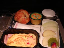 朝食(右写真)。映画は「スチュアート・リトル2」とかやってたが、本読んでたので見なかった。