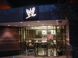 ベッドメイキングを遅らせてもらって15時まで部屋で時間をつぶし、15時20分に集合。チケットをもらってバスに。まずはコネチカット州スタンフォードにあるWWEのヘッドクォーターに。見学許可が出なかった(何年か前「WWF冬の時代」の時のツアーは中には入れたそうだ)ので外からだけ。それにしても車中で墜落睡眠状態になってしまうのはやっぱり時差ボケのせい?