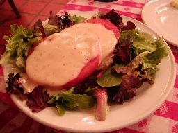こっち来てからあんまり野菜食べてなかったなあ、と思いサラダ注文。でかっ(右写真)。値段は$5しない。