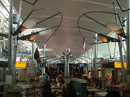 帰りのノースウェスト17便(右写真)。セキュリティチェックに時間がかかるかもしれない、ということで早めにゲートに。案の定厳しいチェック。PCもカバンから出して見せるようになっていた。と言っても私はそれ知らなかったので入れたままX線検査機に。「PC見ますか?」と聞くが「いや、いい」とのこと。結構いい加減?しかし同室の人は靴まで脱がされていたぞ。