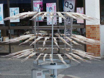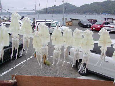 呼子はいかの町。いたるところでいかの一夜干しが作られている(右写真)。