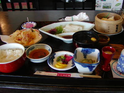 そのへんの旅館のレストランに入っていかづくし御膳(右写真)を食う。やっぱり活け造りにすべきだったか?しかしこの旅館「松田」、昼飯を食べた人はラジウム温泉に無料で入れるというサービスをやっていたのできっちり入る。他に入ってくる人いなかったなあ。無料でもそんなにひかれるもんじゃないのか。ま、浴槽ひとり占めは気持ちよかったけど。