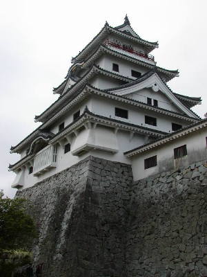 海に突き出した小山の頂上にある唐津城。山道を5分ほど登ると天守(右写真)。国内から攻められることはなかったろうに、いちおう海外ににらみをきかす意味があったのか?ちなみに現天守は昭和41年建築ということで自分と同世代。中には興味がわかなかったので入らず。入場料も310円だったし。曳山資料館は200円なのに。