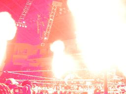 フレアーがしゃべろうとすると炎が燃え上がり(右写真)ケイン入場。フレアーはリング下に逃げて挑発。ケインが追う。