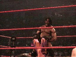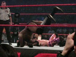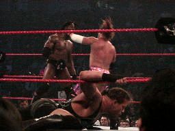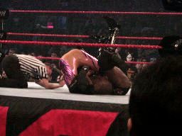 ジェリコはブッカーにパンチ、ブッカーはRVDにチョップ連打。ブッカーロープに振る、ジェリコ回転エビ固め、ブッカー切り返してウォールズ・オブ・ブッカー?(右写真。要するに逆エビ固め)、RVDがカット。RVDがブッカーにシザーズキック、ジェリコがコーナーからRVDにファイブスタースプラッシュ、カウントは2。