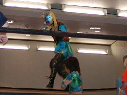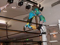コマンドロープ渡りからウルトラ・ウラカン・ラナ(右写真)、カウント2。タランチュラに決めるがこれはレフェリーがブレーク。