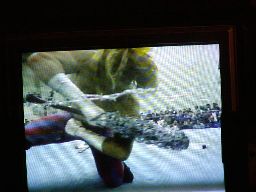 藤沢が出てきたとこで先日の大阪大会のアイアンマンロイヤルランブルのビデオが上映。見入るKUDO。