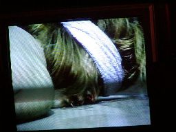 ポイズンにマムシの入ったプラケースを押し付ける(効果のほどは?)マミー。