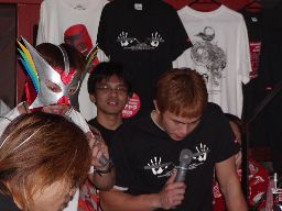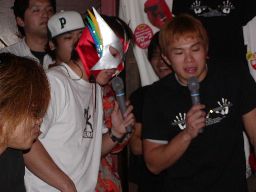 賞品はO.K.のリュック、鳥羽の秘蔵ビデオ&DVD(プロレスではない。長瀬愛とかそっち方面)、MIKAMI生写真、MIKAMIニットキャップ、ハブ影のカンフー着、DDTポスター、ZERO-ONEポスター(坂井提供)、某メキシカンのマスク(高梨提供)、そしてコロッセオ提供の翌日(つうか12時間後)のK-1 GPのチケットなど。