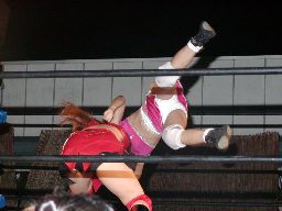 宮崎ドロップキック、肩に担ぐと(右写真)チーズスター、カウント2。