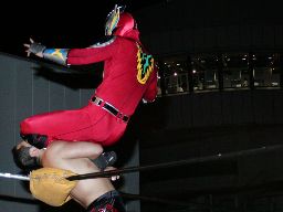 最後はムーンサルトプレス(右写真)でカウント3。