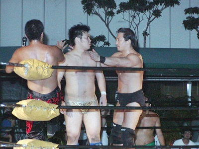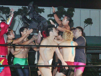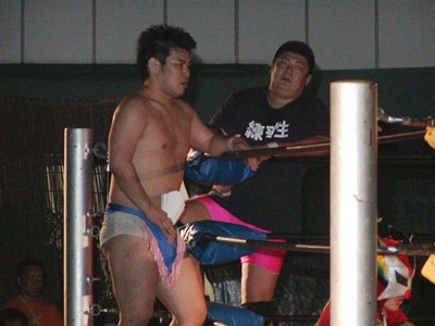 ディーノは仲間はずれにされた腹いせかアイアンマン王者の高木を襲う(右写真)。