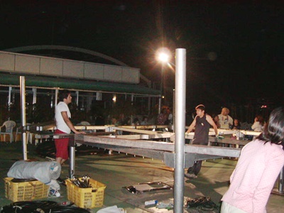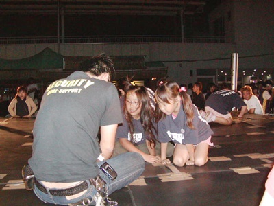 リングを解体するジャッジ金子と地元の子供たち。