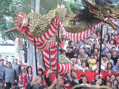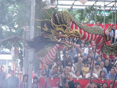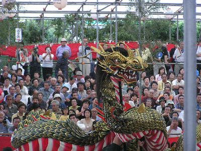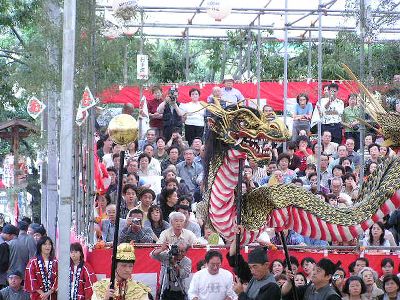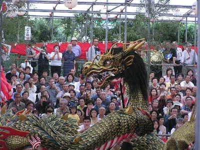 追い求めて上へ下へと体をくねらせる。もちろん龍衆が操作しているのだが見ているうちに龍が生き物に見えてくる。